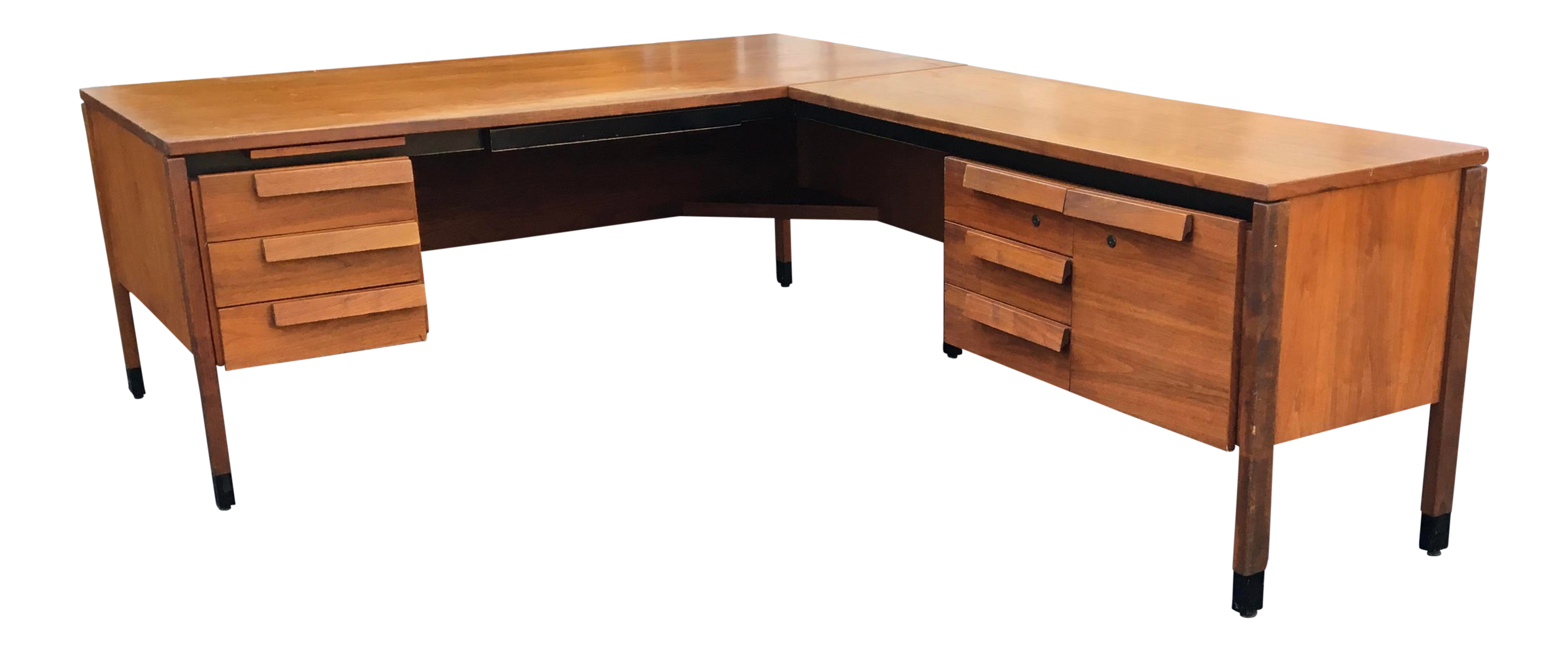 Jens Risom Designs L Shaped Mid Century Walnut Executive Desk Galaxiemodern