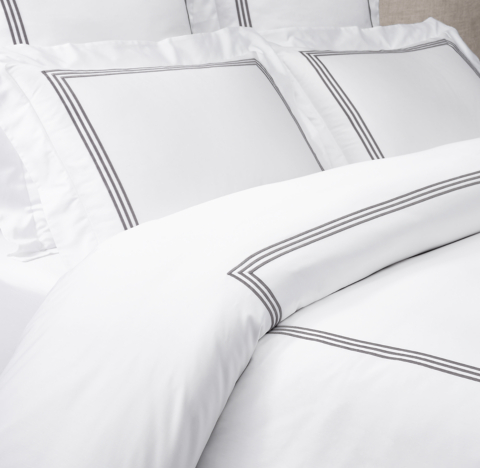 White bedding with black trim. Create a comfy room with duvet covers. Then you can also mix and match these two colors throughout the room. 200tc Cotton Sateen.